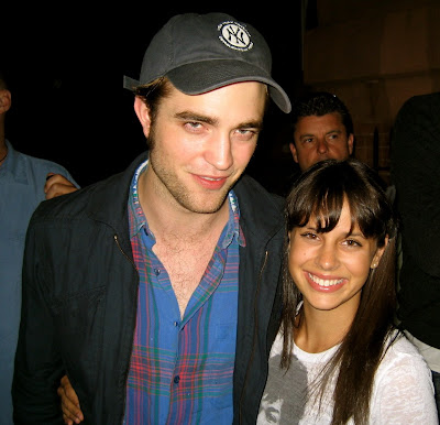 Here's the story of what actually happened. so i live in brooklyn and they were filming a few blocks away; I wanted to go over there but my dad and grandma think i'm fucking crazy (like no joke, they want me committed to which i respond, hello! i just graduated college with magna cum laude! holy shit you think I'd catch a break?!) so I called up my mom (who lives in CT) and she was like, you will never get over it if you don't go--you must go to the set, and take pictures! [YAY Mom!] So i go super-early the next morning and they weren't there until later in the day. I go back at 8pm and wait with a bunch of other girls, some fucking annoying 12 yr olds were running up and down the block trying to get his photo, they were kicked off set luckily - people like that just ruin everything for the respectful (and somewhat less crazy) people like me :) anyway, so the crowd dwindles down to around 10 people around 1:30 am, and we had been shivering and standing in heels for hours... the crew wouldn't give us any food (jerks - and not the good Jerkface kind lol). Rob finally came out with his bodyguards (all of the PA's and guards have nicknames on twitter from fans btw like "the regulator," "dr. phil" [note from STY - I know EXACTLY which dude this is 'cause I thought the same thing!], "evil taye diggs" - the list goes on) and they made us form a line and i was 2nd in line and i was shaking because i was fucking IN HEAVEN!! and cold too and i smiled at him and he he was laughing at something and he put his arm around my waist and i put mine around his and he smelled like a man i would want to do dirty nasty things to me (don't tell me boyfriend although he already knows) and beer, lots of beer (heinken bottles were all over the inside of his trailer--you'd think he'd have better-quality beer these days). then we took the photo and i was in shock, and i forgot to do the one thing my mom made me promise, so i got in line again, and when it was my turn I whispered to him "so my mom said she would never forgive me if I didn't ask you out for a drink" and rob--laughing in his melodic voice--says "what? with your mom?" and i said "no with me hahahaa" and he replied "hahaha i don't drink" and i blurt out "hahaha yeah right!" and then the guards whisked him away very swiftly and i got a very strong need to wear blue and red plaid all of a sudden - it's like he sleeps in that shirt. he was just so gorgeous i honestly can't find the right words for it and yet so humble and nice to us...c'est tres magnifique!